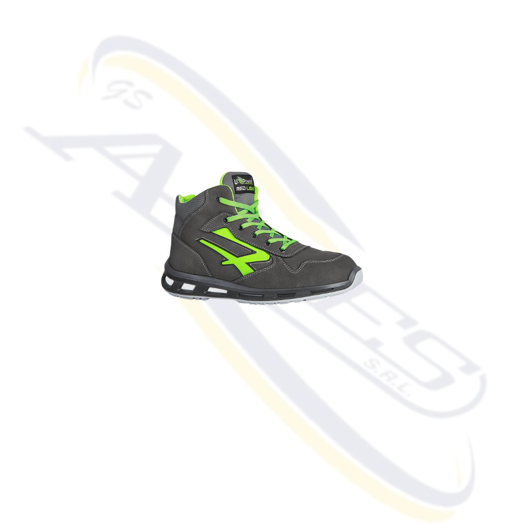 Scarpe antinfortunistiche alte, leggere e comode u power della linea Red Lion, con tomaia in pelle nabuk naturale bottalato, traspiranti, idrorepellente, puntale in alluminio, antiperforazione, antiscivolo e suola PU/PU, infinergy S3 SRC CI ESD